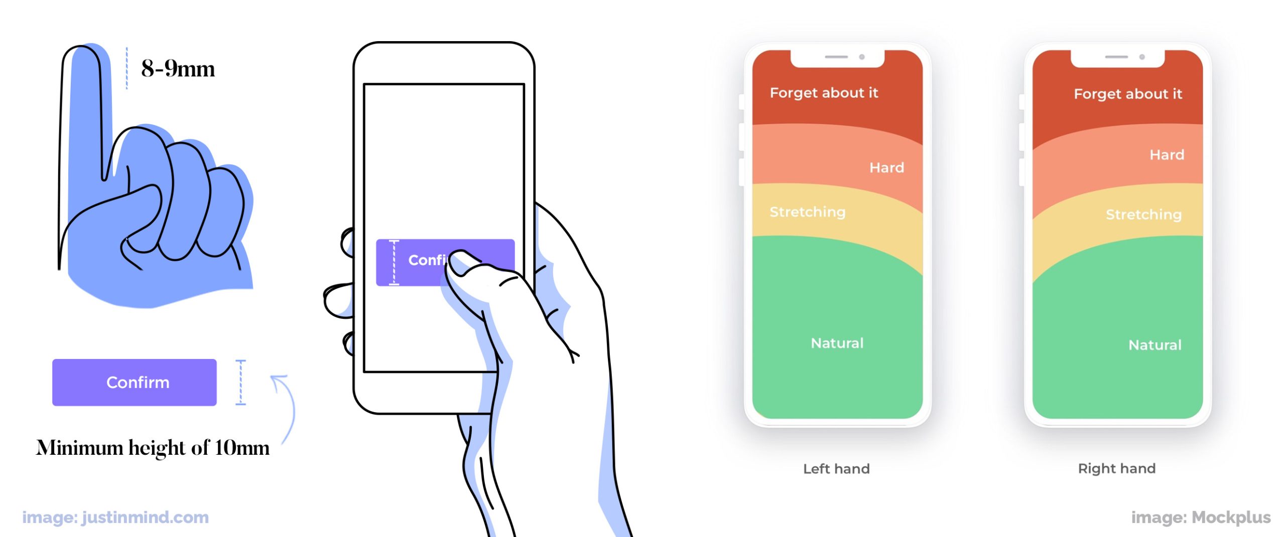 Дизайнът за мобилни устройства не е свързан само с това, че елементите се подреждат един под друг. Самата ползваемост е различна – пръстът е с по-ограничен обхват от мишката, а дизайнът трябва да е еднакво удобен за работа с всяка от ръцете.