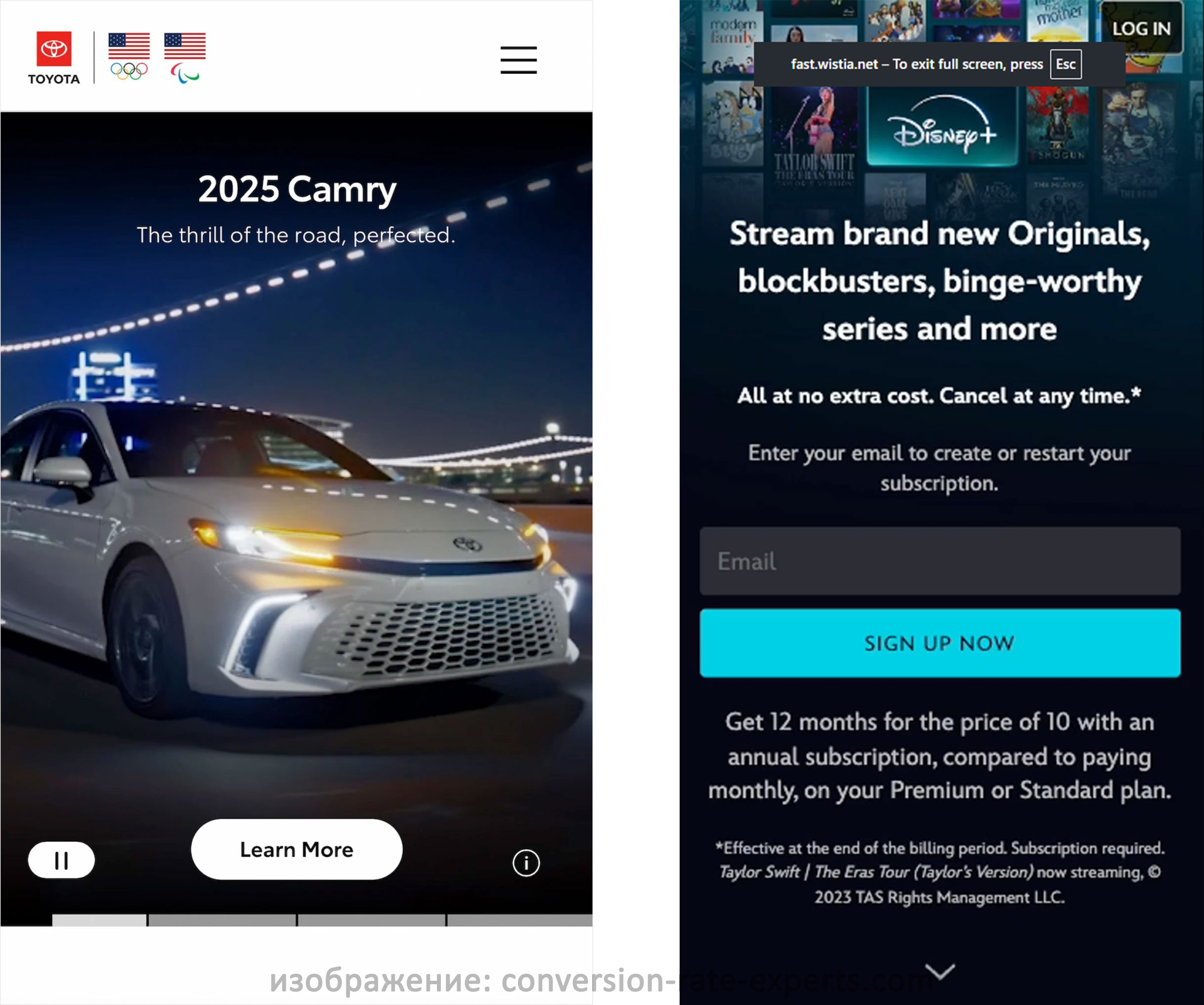 Не се притеснявайте да използвате стрелки, бутони или текстови призиви за действие. Можете смело да ги направите контрастни, за да се виждат. Можете дори да ги анимирате, за да „дразнят окото“ достатъчно, че да не останат незабелязани.