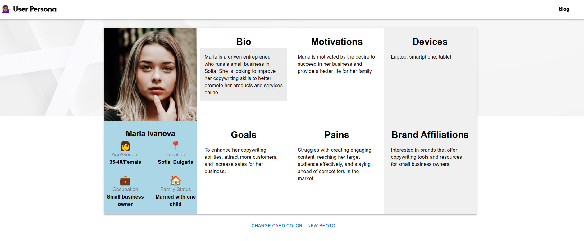 Тази персона не представлява основния профил потребители, с които работя нито възрастово, нито като занимания, нито като цели. В нея не се споменава нищо за предишен опит на Елена с подобни продукти и услуги, с какви цели идва на сайта ми, какъв език използва, липсват и още няколко доста важни точки.