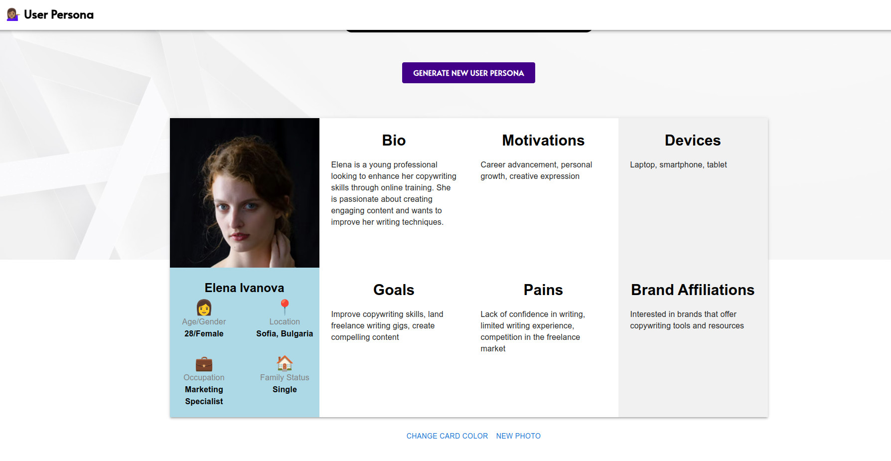 За сведение на всеки фрийлансър, който може да е пропуснал информацията: генерирането на юзър персона с помощта на AI отнема секунди до минута.